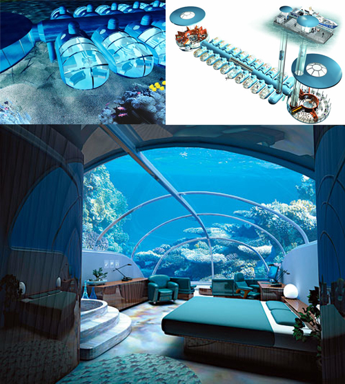 Отель Poseidon Undersea на Фиджи пока строится. Но уже сейчас его владельцы обещают туристам невиданную роскошь на дне моря. Отель расположен в кристально чистой лагуне на глубине 12 метров. В номера и местный ресторан можно будет попасть с помощью специального лифта.