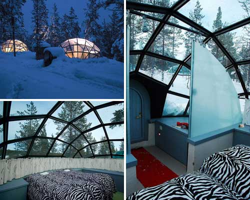 Отель Kakslauttanen, расположенный в Финляндии за полярным кругом, приглашает пожить в иглу-деревне. Вместо потолка в здешних номерах - купола из специально обработанного стекла, не пропускающего холод даже во время экстремальных морозов. Это позволяет гостям любоваться северным сиянием, лежа в постели. Также предлагается размещение в снежных иглу и проведение свадебных церемоний в снежной часовне Lapp Kota. Пожить в этой деревне можно с декабря по апрель. Стоимость проживания предоставляется по запросу.