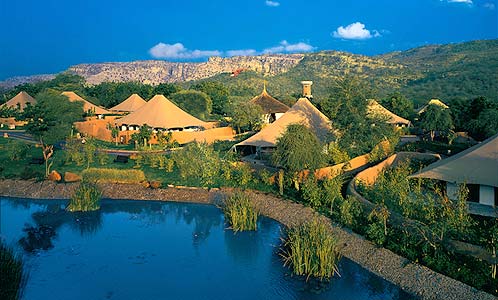 Oberoi Vanyavilas - это роскошный отель посреди джунглей. Он расположен в индийском штате Раджастхан, в непосредственной близости от тигриного заповедника Ranthambore. В каждом номере можно найти расшитые диваны, элегантную мебель, укромную террасу, телевизор с DVD-плеером, широкополосный доступ в интернет и личный бар. Стоимость проживания - от $860 до $957 в сутки.